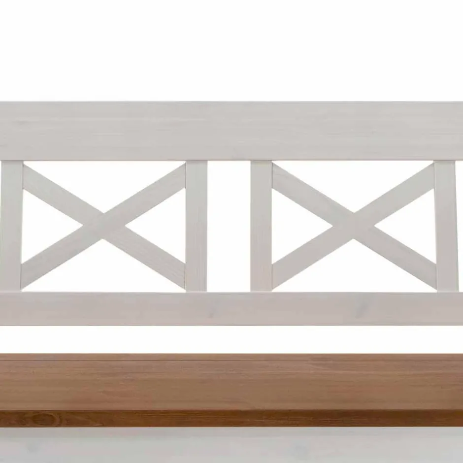 - Idyllische Sitzbank in Weiß und Kiefer Bernsteinfarben