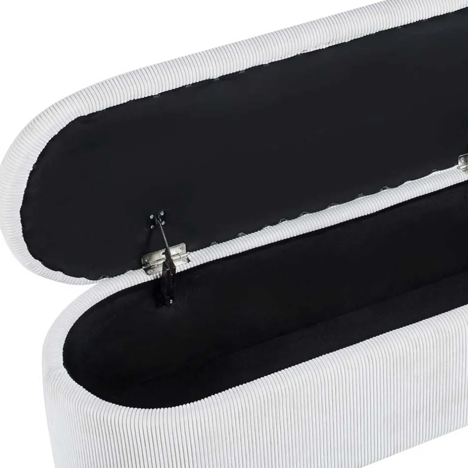 - Aufklappbare Truhe mit Metallscharnieren, innen mit schwarzem Webstoff (100 % Polyester) ausgeschlagen