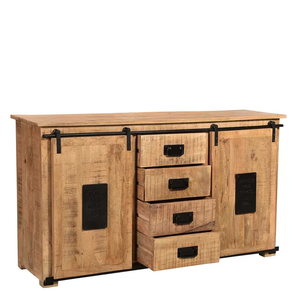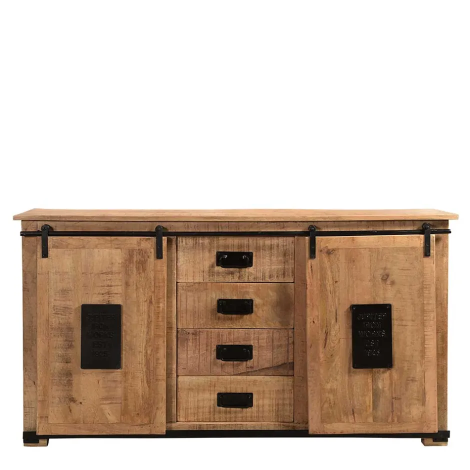 - Beeindruckendes Sideboard in Mangoholz Naturfarben und Antikschwarz