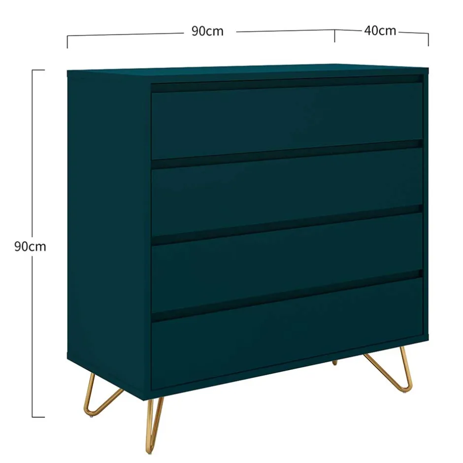 - Trendige Schubladenkommode in Petrol und Goldfarben