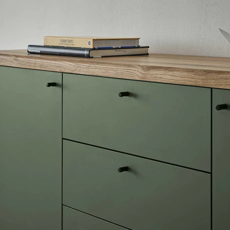 - Aktuelles Sideboard in Graugrün und Wildeichefarben