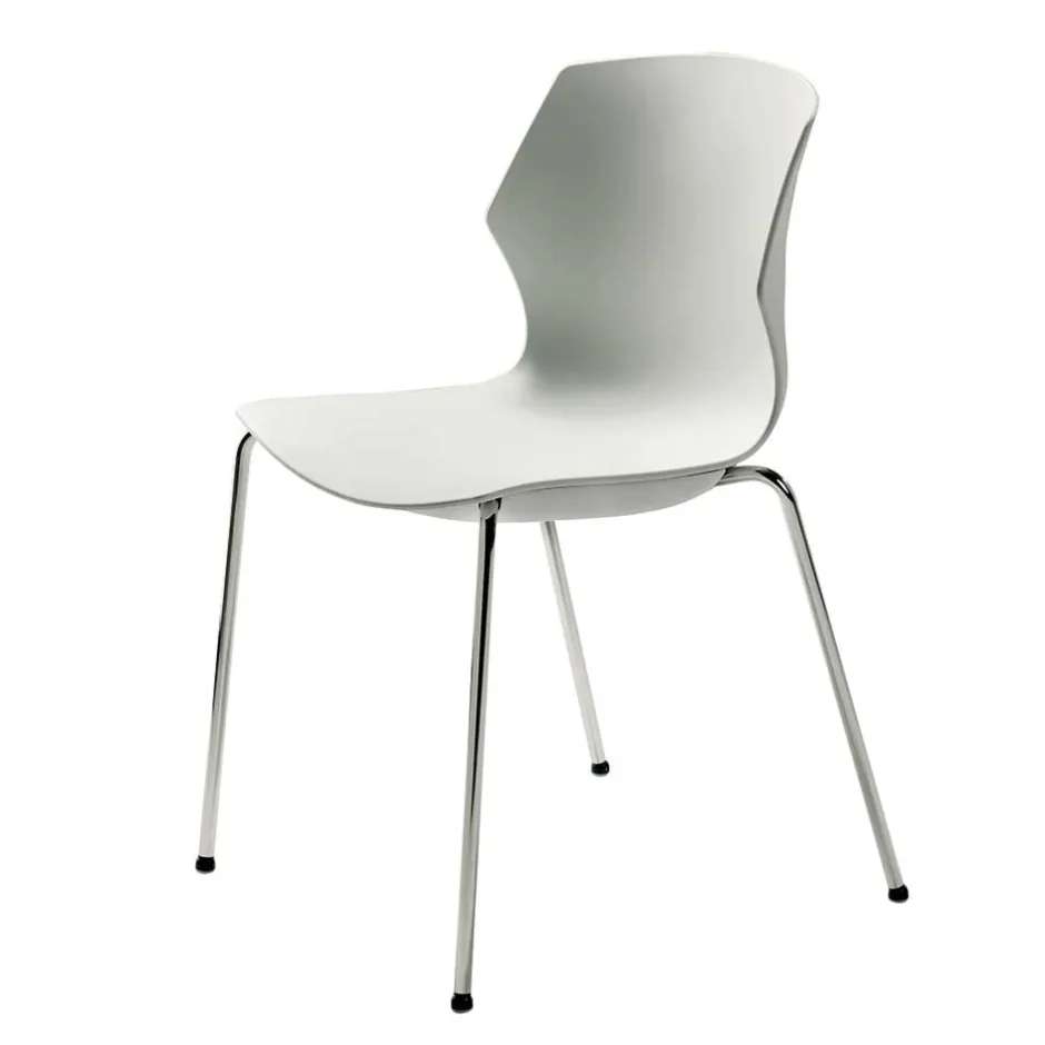 - Dezenter Stapelstuhl in Weiß und Chromfarben
