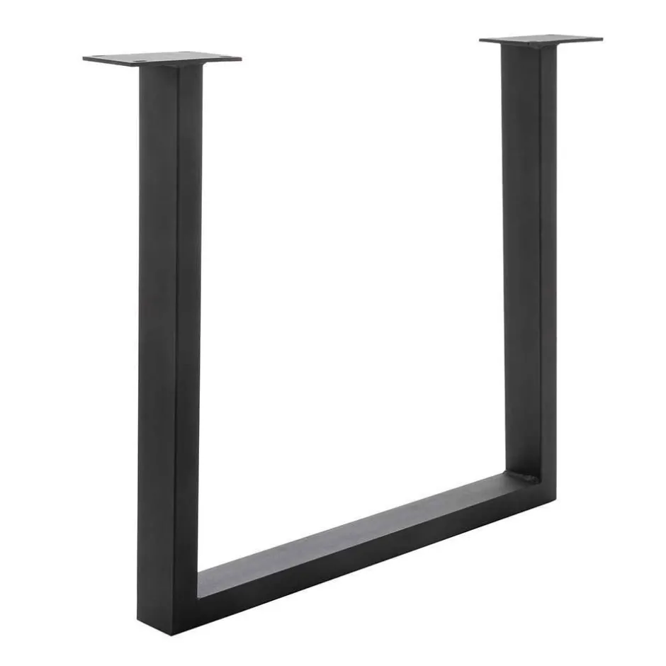 - Ein schwarz pulverbeschichtetes Metall Bügelgestell unterstreicht den industriellen Charakter des Tisches
