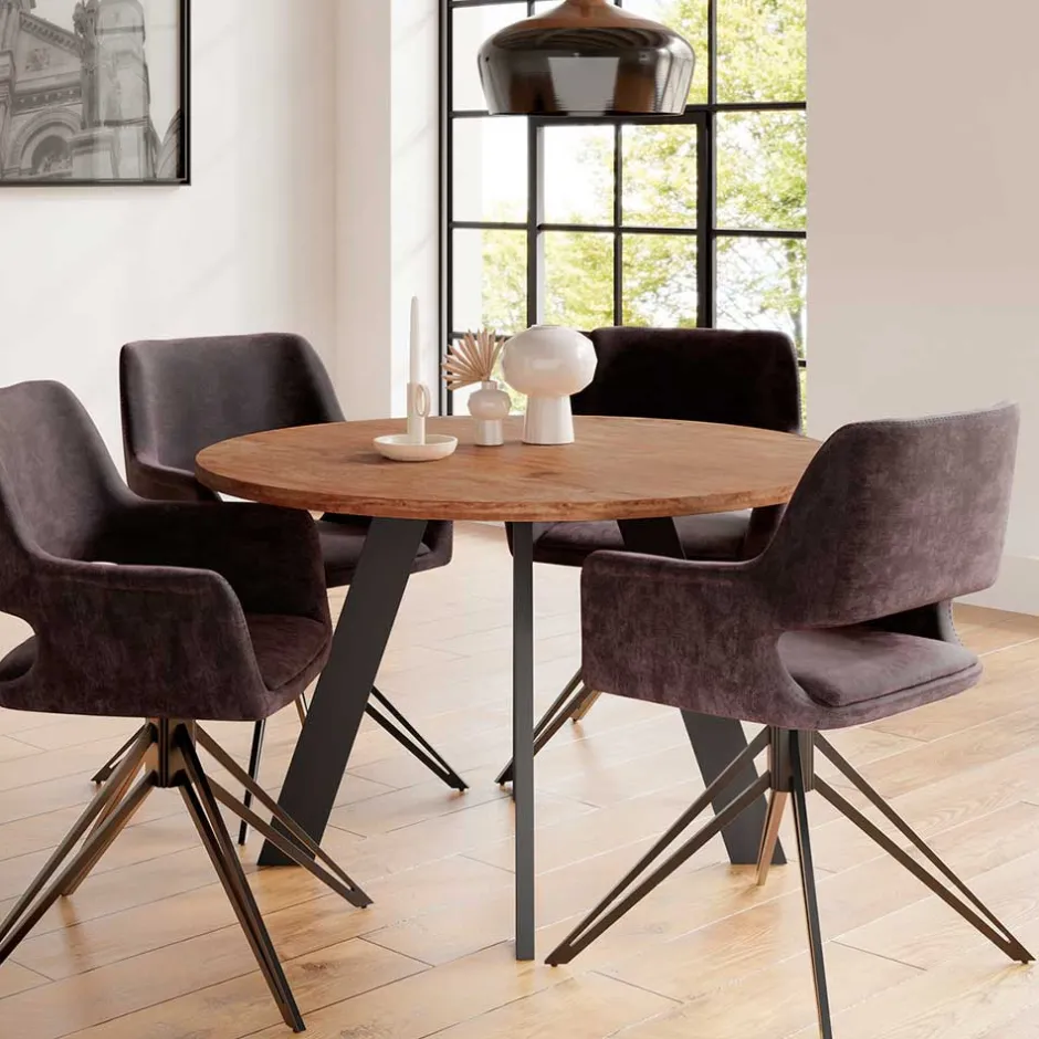 - Klasse Esstisch in Akaziefarben und Schwarz