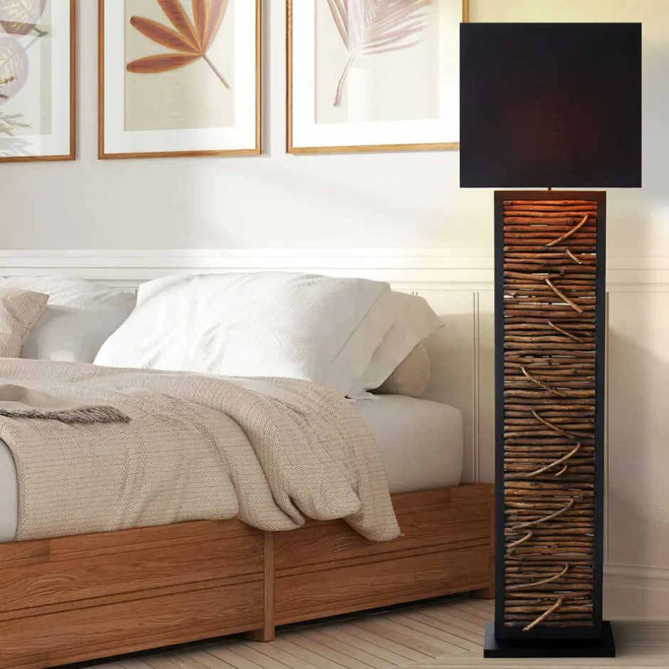 - Interessante Stehlampe in Schwarz und Holz Naturfarben