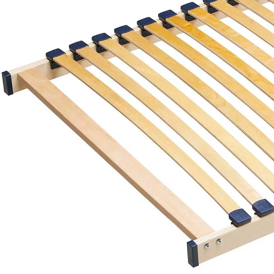 - Die 26 Schichtholzfederleisten aus Birkenholz sind in beweglichen Kappen eingefasst