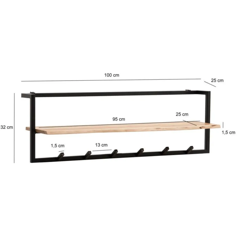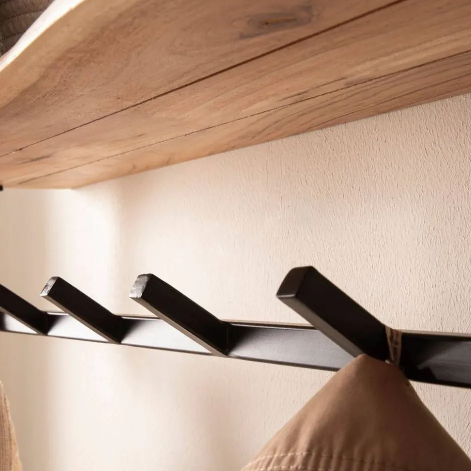 - Rustikale Wandgarderobe in Akazie Naturfarben und Schwarz