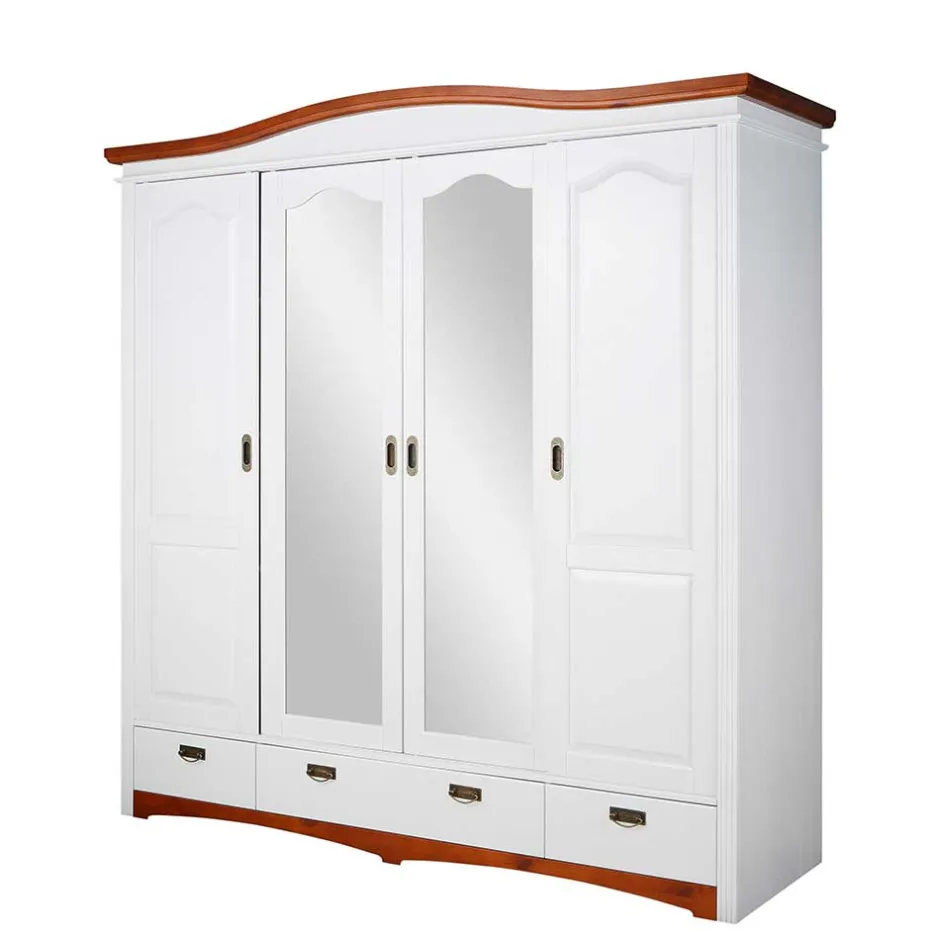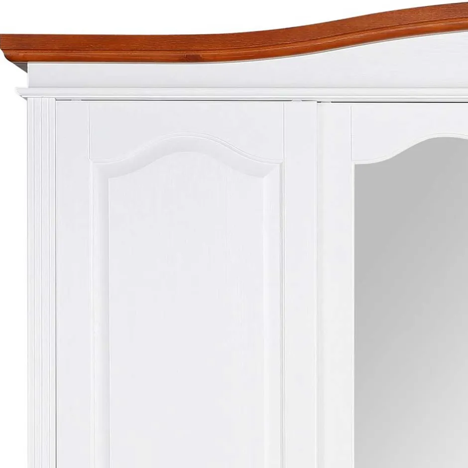 - Aparter Landhaus Kleiderschrank in Weiß und Kirschbaumfarben