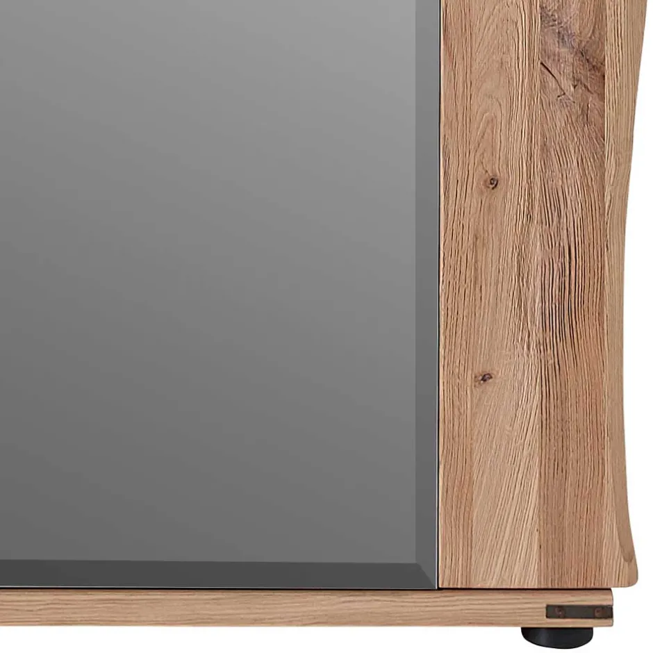 - Hergestellt aus Wildeiche Massivholz (Front), Spiegelglas und Spanplatte (Korpus)