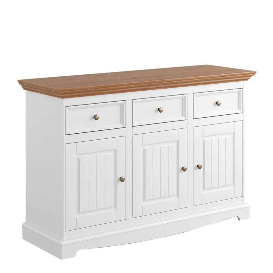 - Liebevolle Details wie eine formschön gefräste Deckplatte, Schubladen in Kassettenoptik und Türen mit Rillenstruktur unterstreichen die Hochwertigkeit