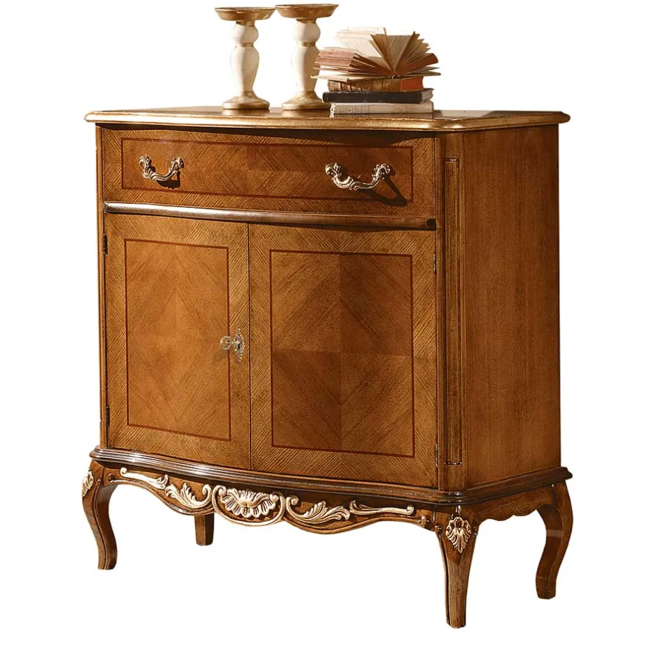 - Elegantes Stilmöbel Sideboard in Nussbaum- und Goldfarben
