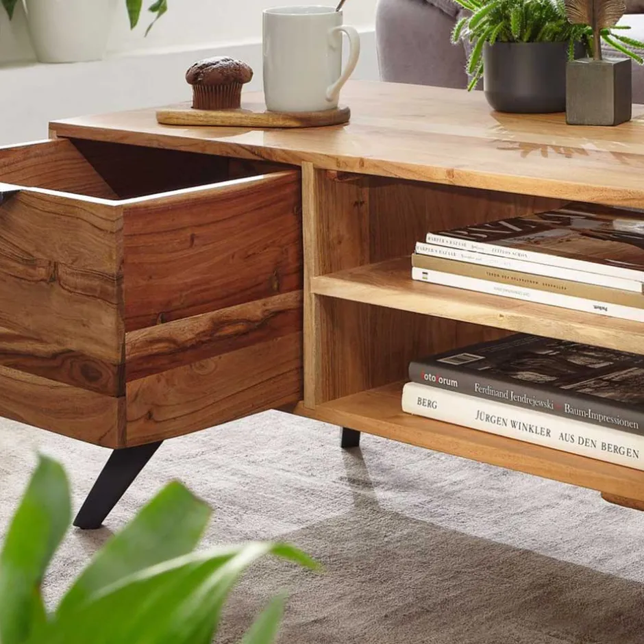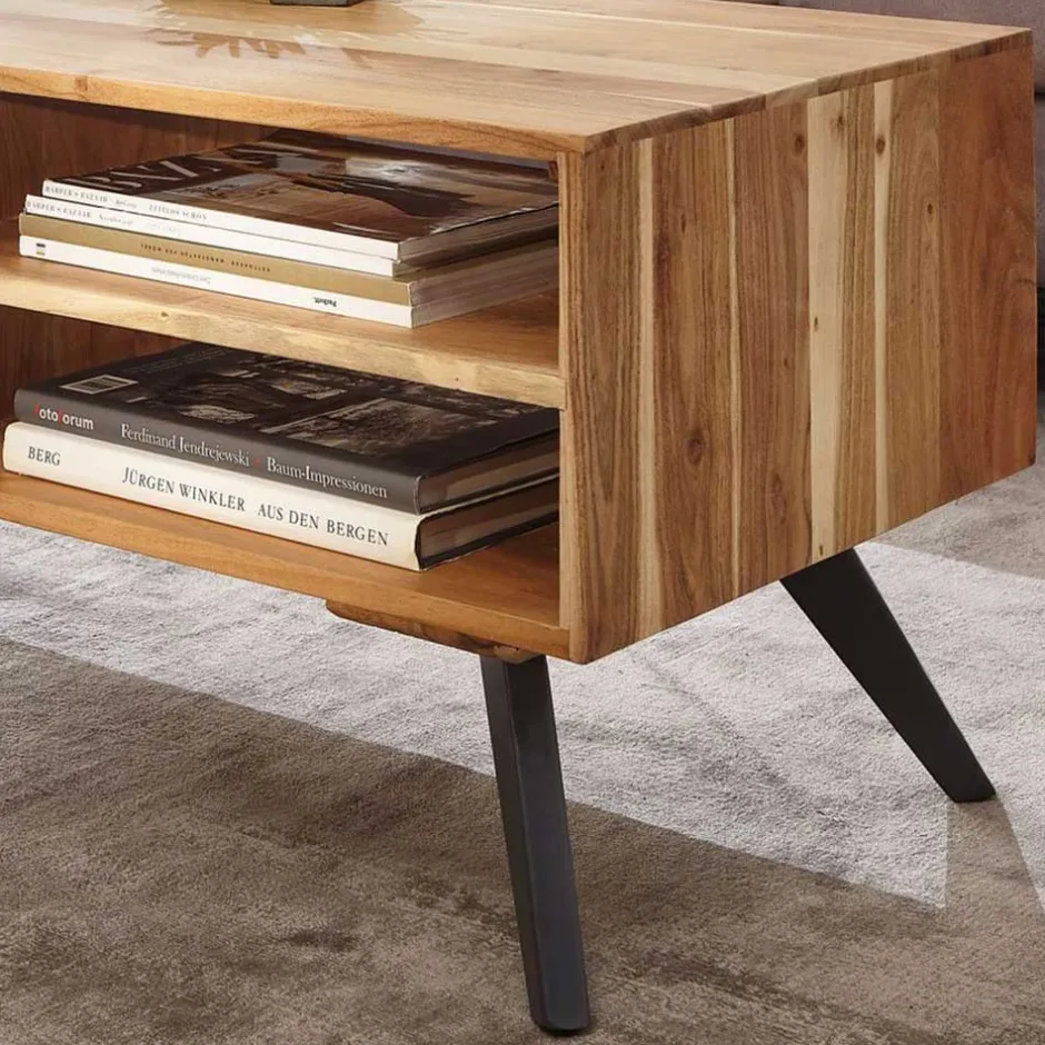 - Trendstarker Couchtisch in Akaziefarben und Dunkelgrau
