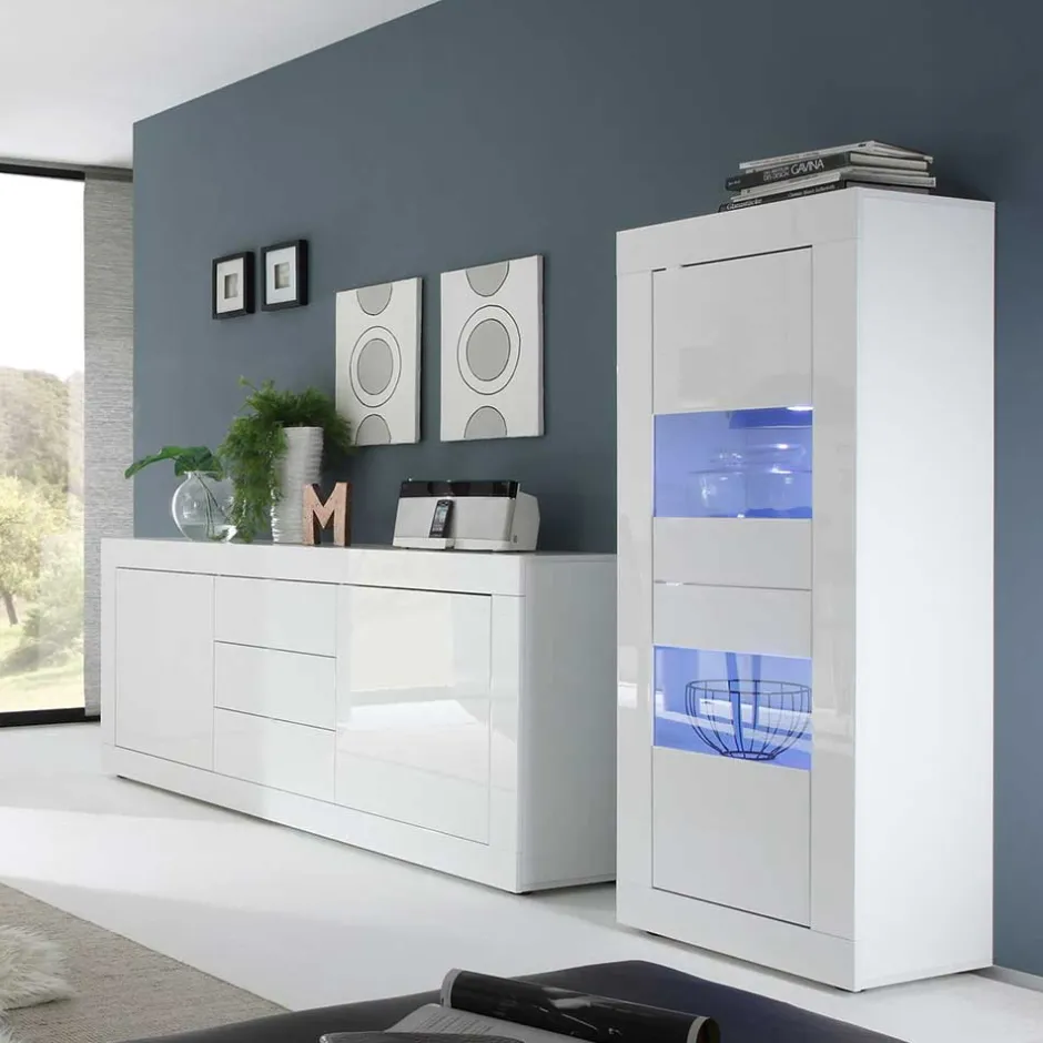 - Elegante Wohnwand in Hochglanz Weiß