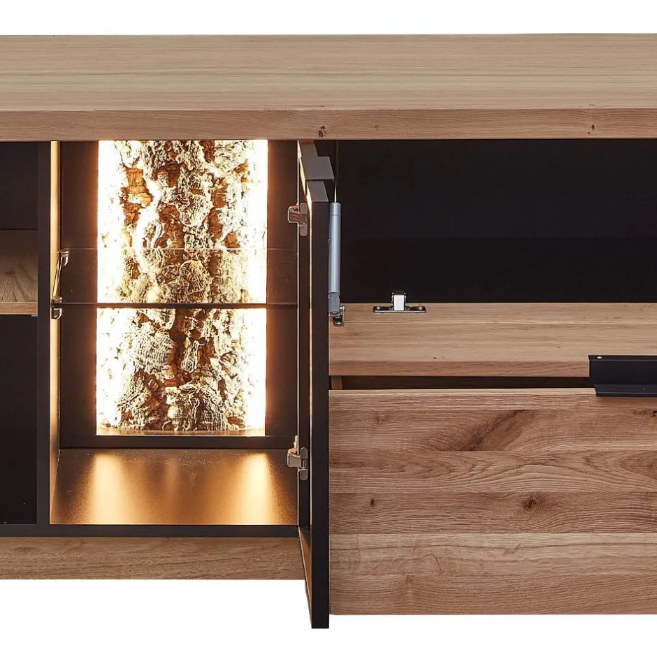 - Klasse Wohnwand in Wildeiche Bianco und Anthrazit