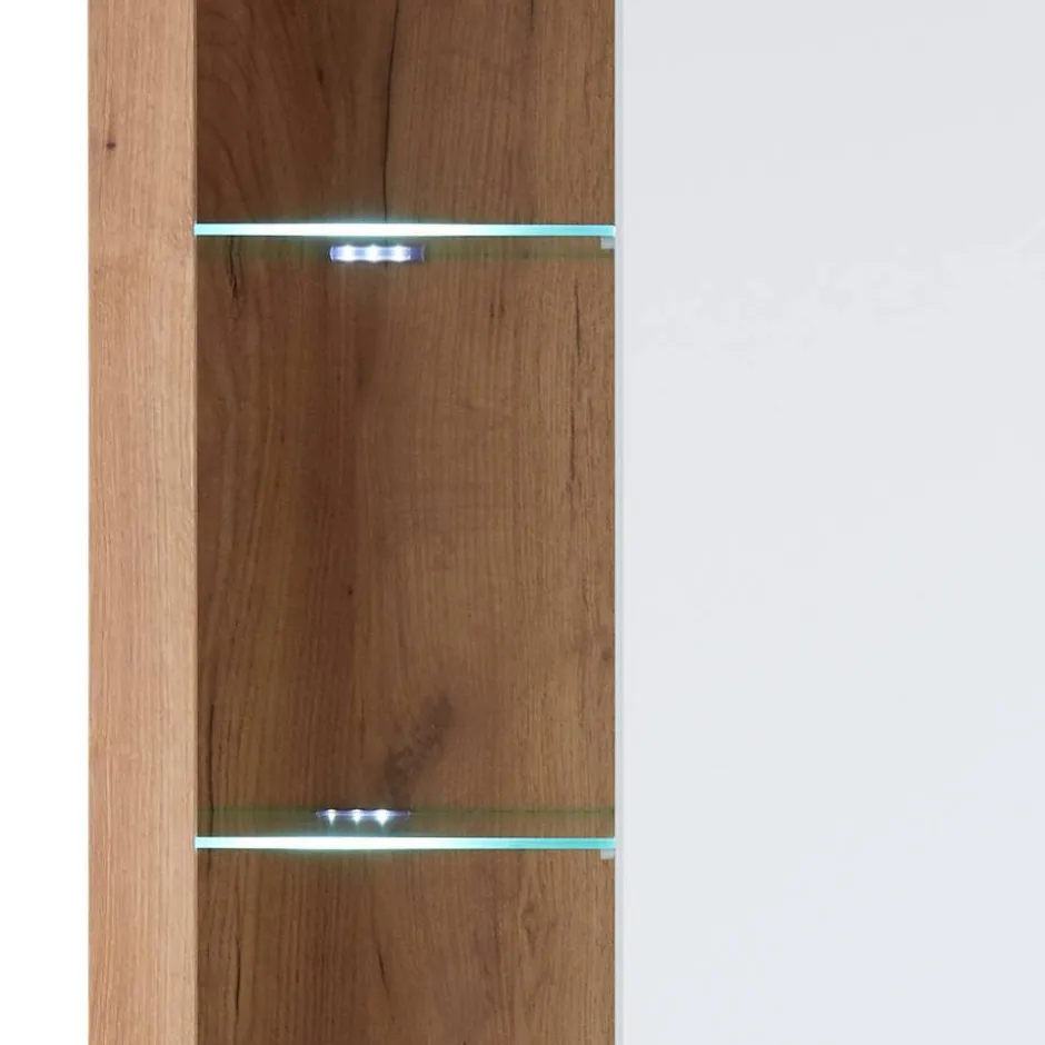 - Schicke Wohnwand in Weiß supermatt und Eichefarben