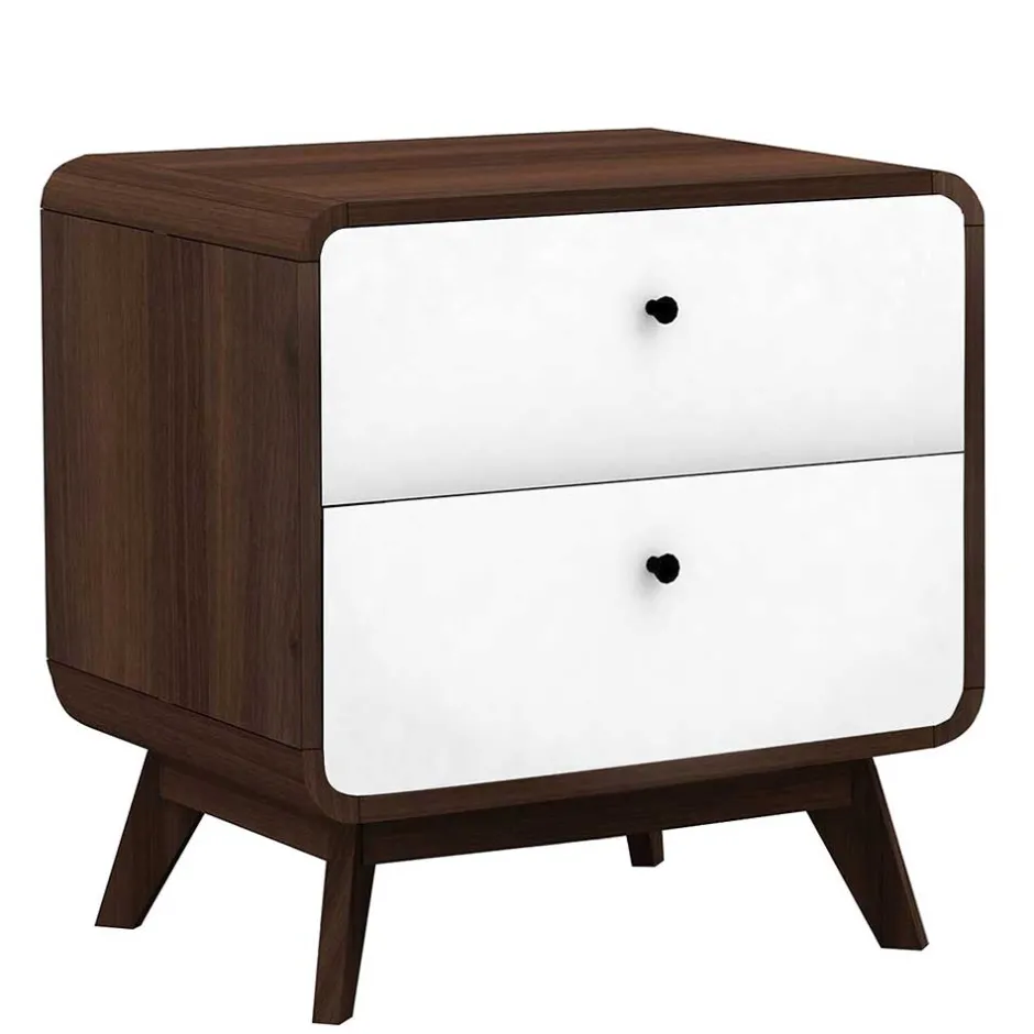 - Kompakte Nachtkommode in Walnussbraun und Weiß