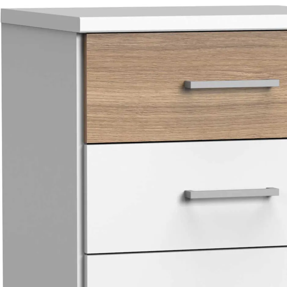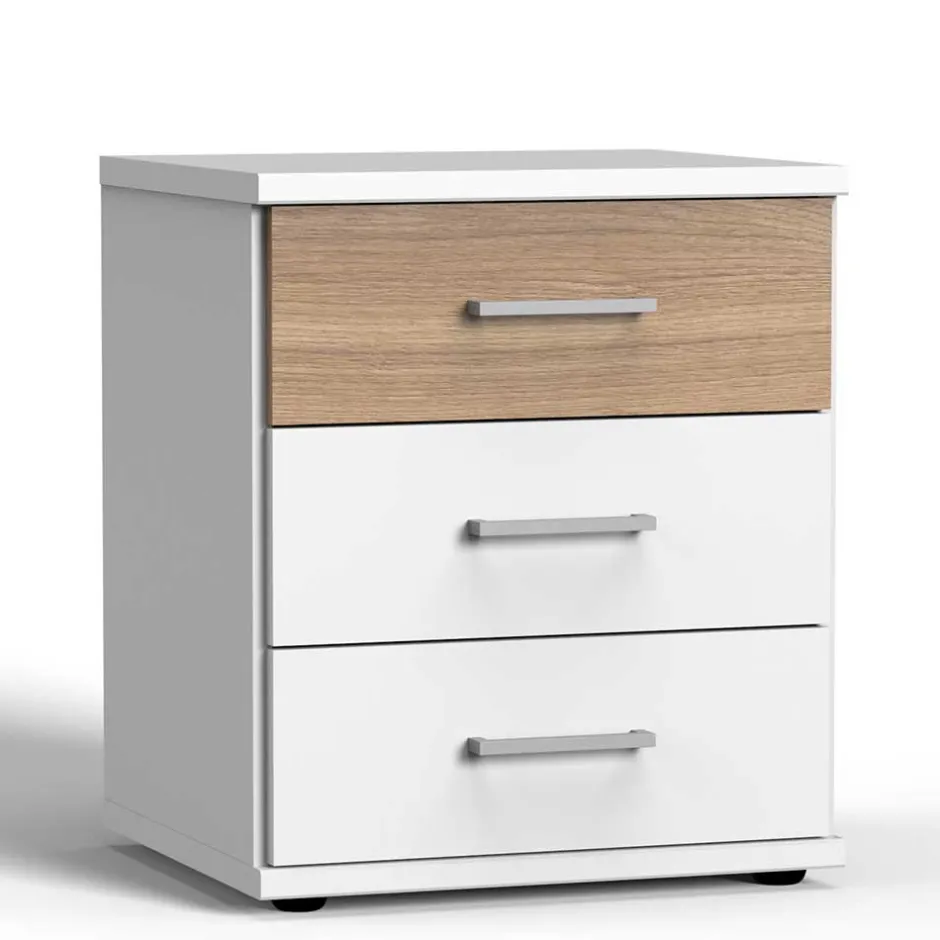 - Kompakte Nachtkommode in Weiß und Eichefarben