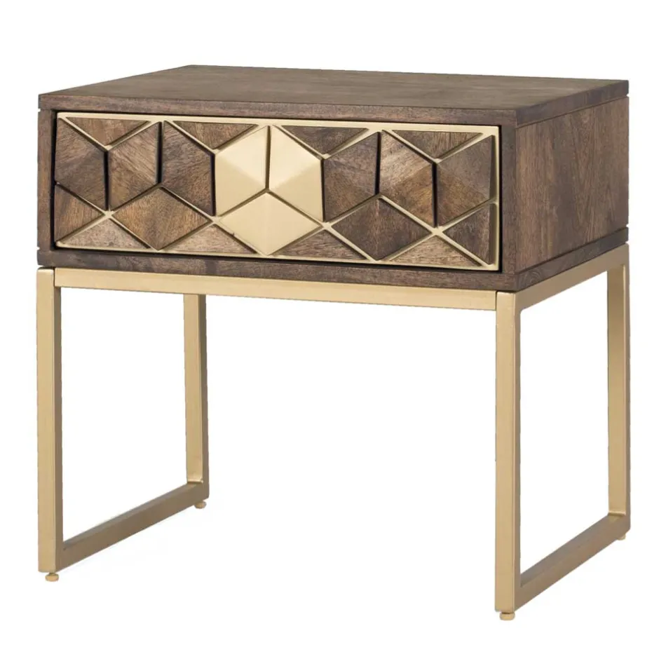 - Schicke Nachtkonsole in Walnussbraun und Goldfarben