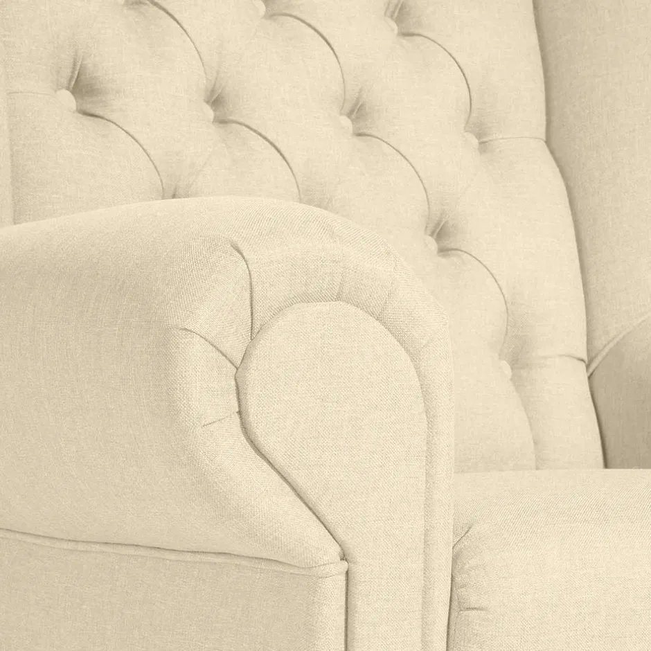 - Aufwändige Gestaltung mit seitlichen Ohren und Knopfsteppungen