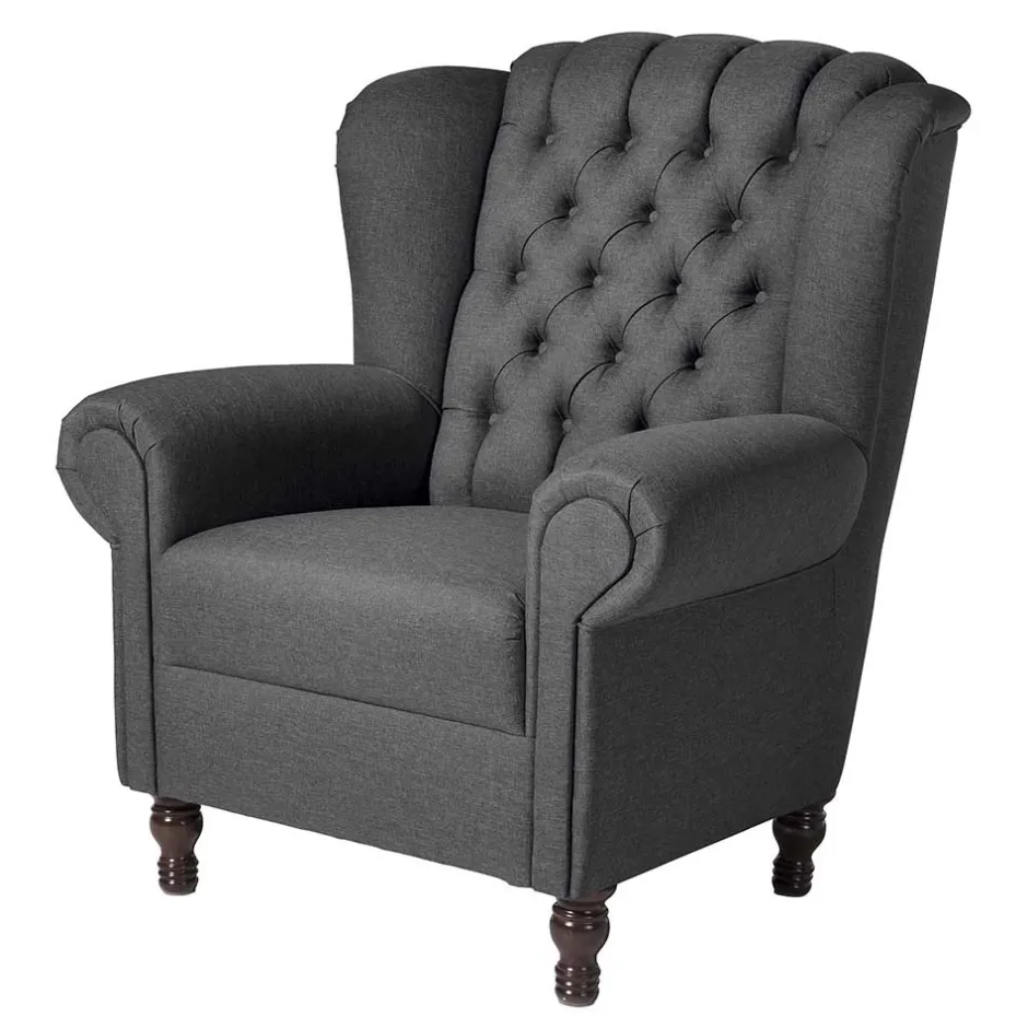 - Markanter Sessel und Dunkelgrau und Nussbaumfarben