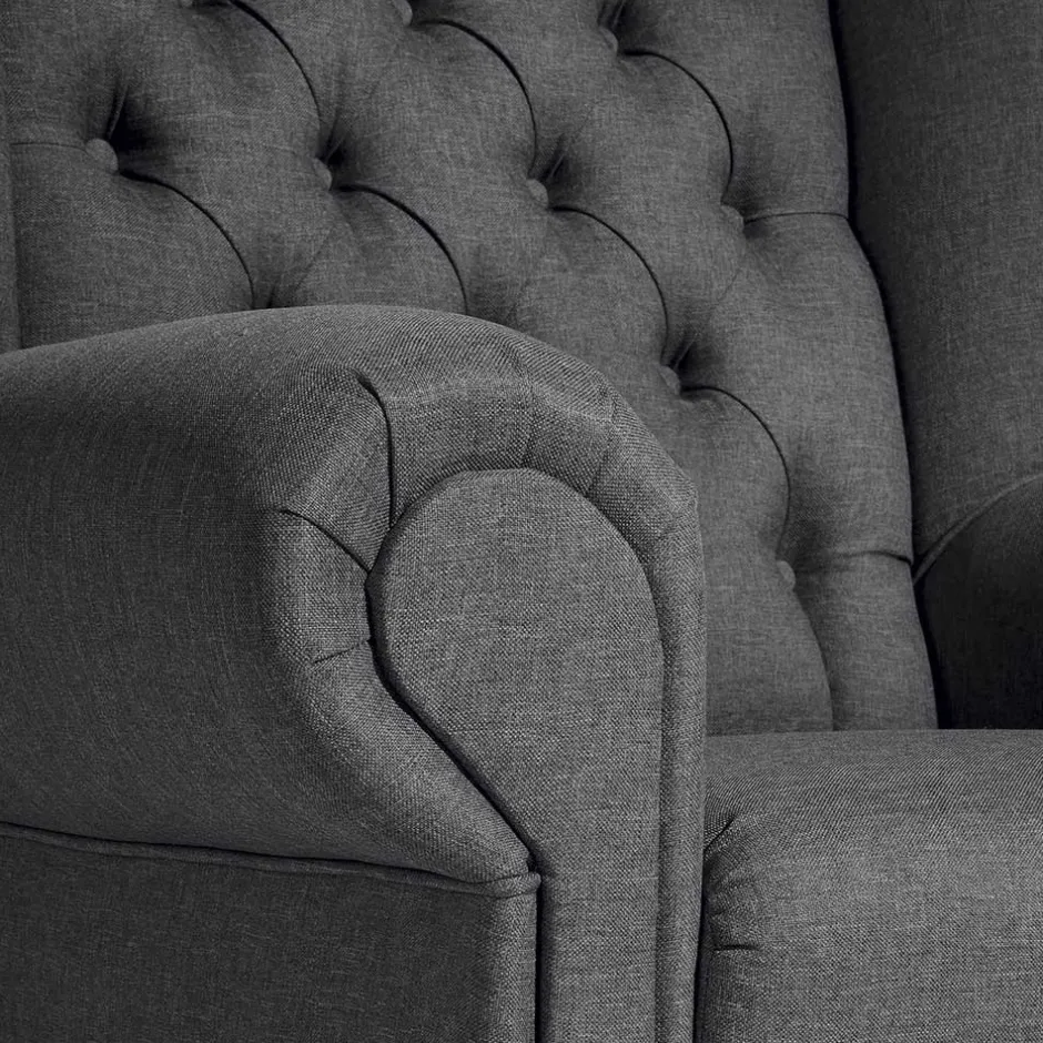 - Aufwändige Gestaltung mit seitlichen Ohren und Knopfsteppungen