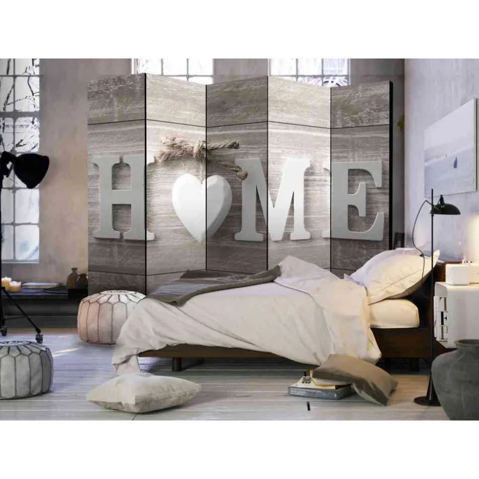 - Wohnlicher Paravent in Holz White Wash und Weiß