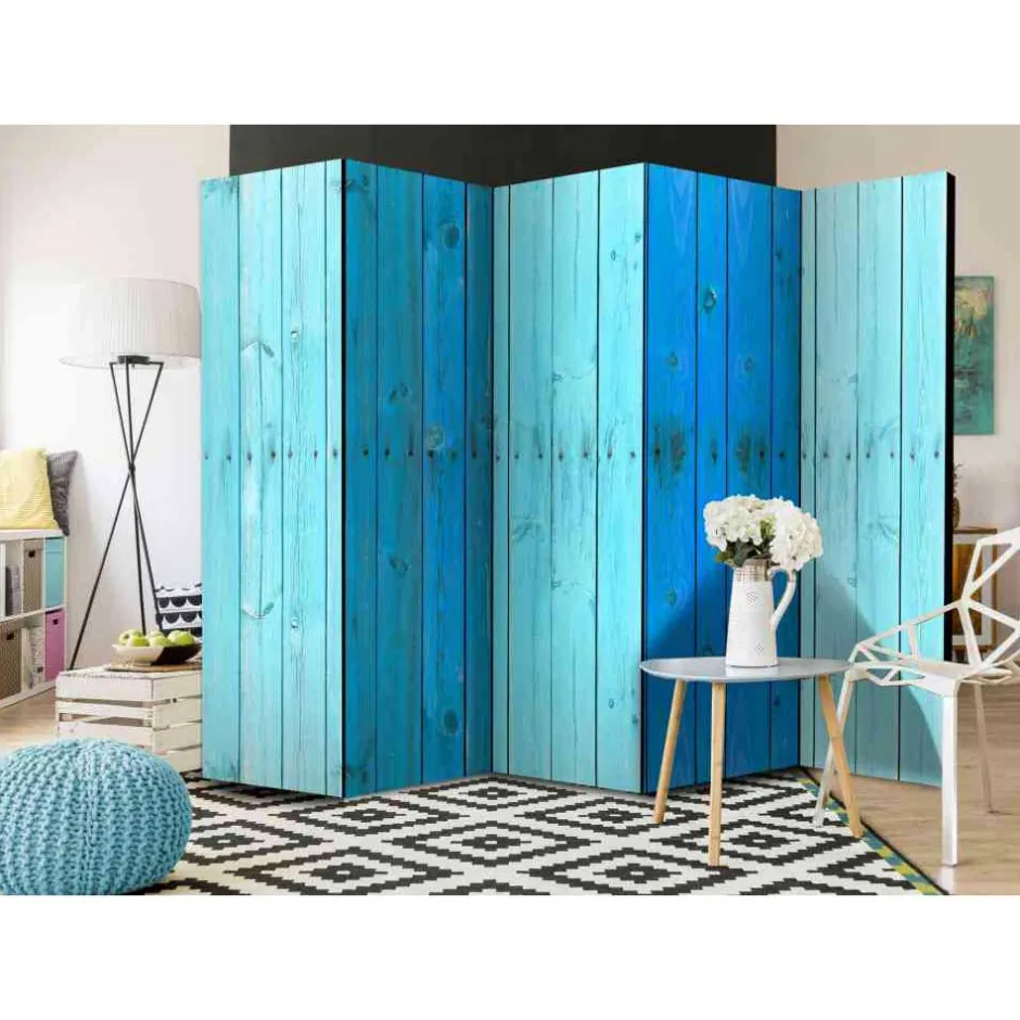 - Stabiler Paravent in türkisem Holzdekor