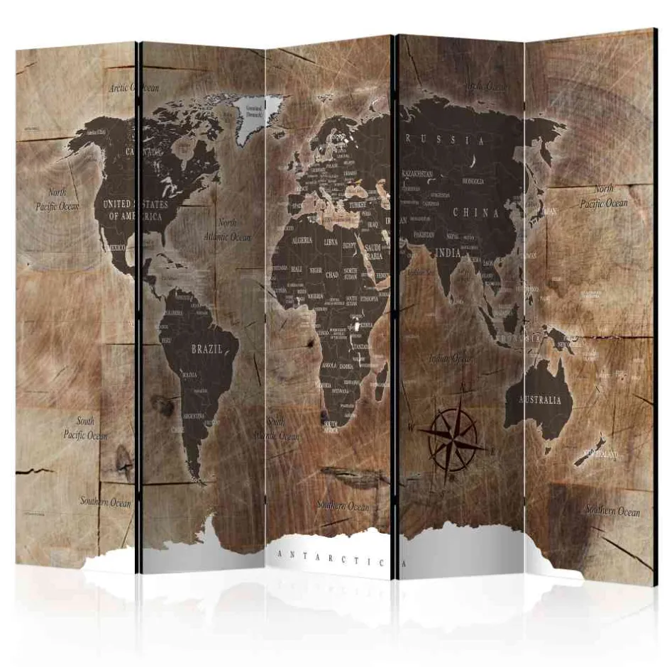 - Weltkarte auf Baumstamm-Optik Hintergrund