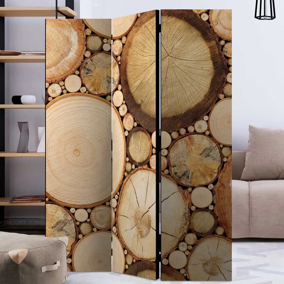 - Rustikal anmutender Paravent in Holz Optik