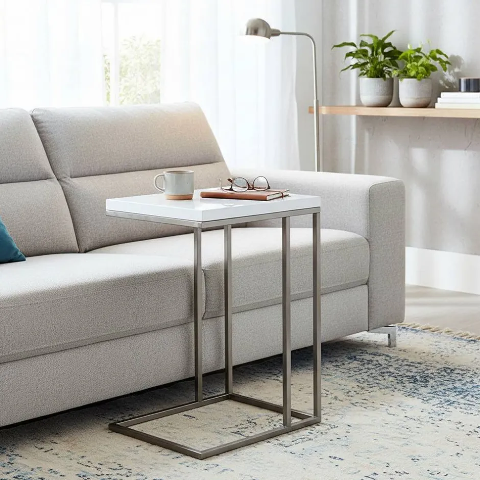 - Kraftvoller Beistelltisch in Hochglanz Weiß und Silberfarben