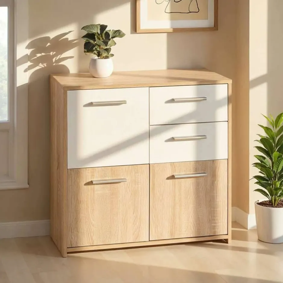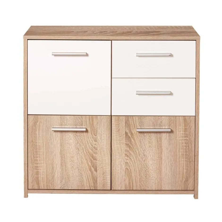 - Dezente Kommode in Weiß und Sonoma Eiche