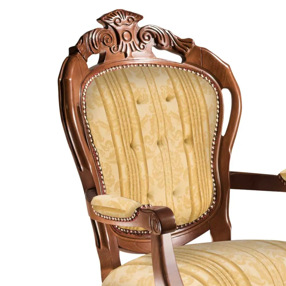 - Charmanter Stuhl in Gelb, Cremeweiß und Nussbaumfarben