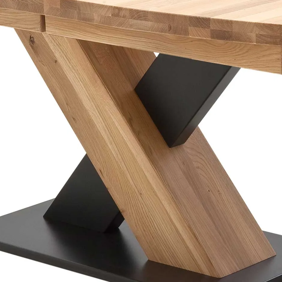 - Zweifarbiges Säulengestell in X-Form, schwarze Anteile aus MDF gefertigt