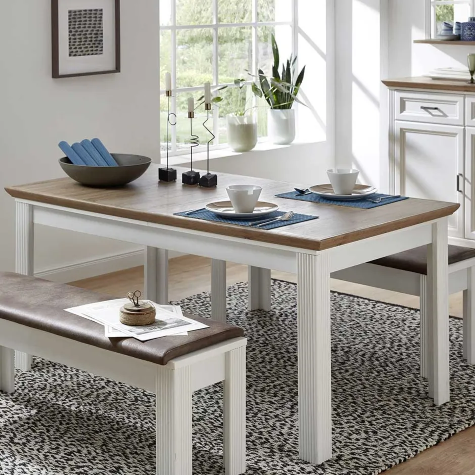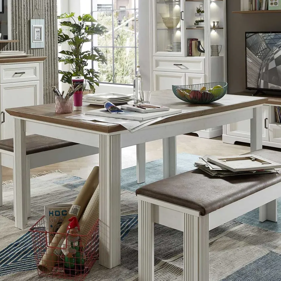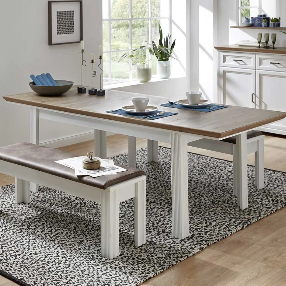 - Ausgezeichneter Esstisch in Pinie Weiß und Eichefarben