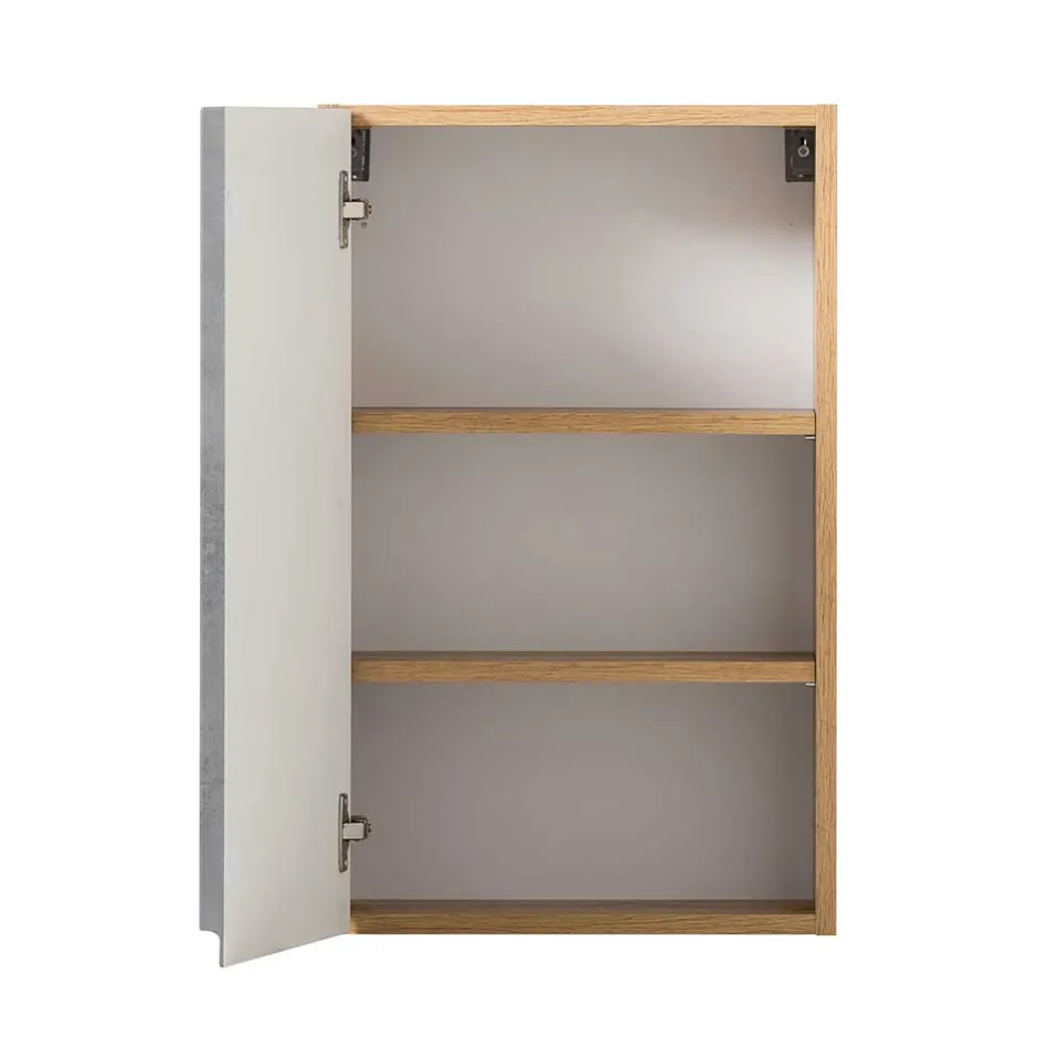- Attraktiver Bad Hängeschrank in Betongrau und Wildeichefarben