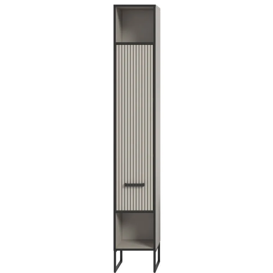 - Schlanker Bad Hochschrank in Hellgrau und Schwarz