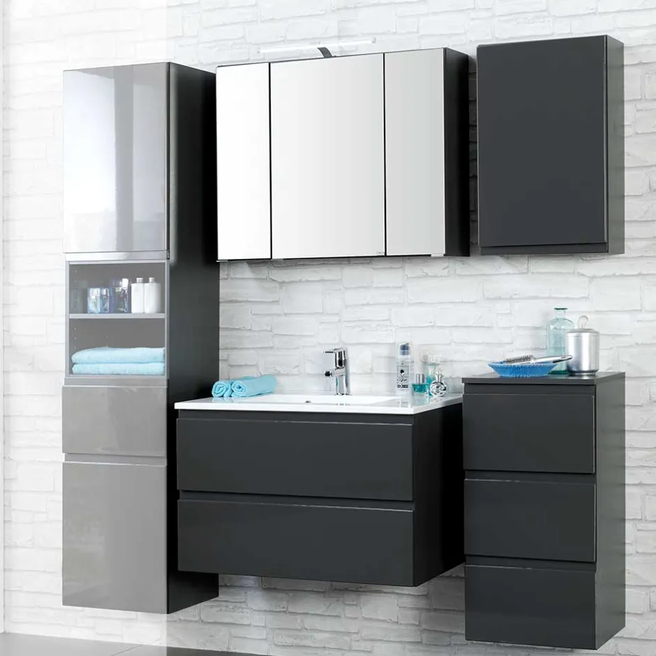 - Edles Badmöbel Set in Anthrazit Hochglanz