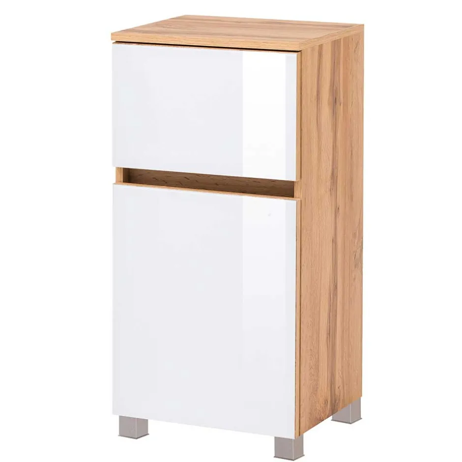 - Eleganter Bad Unterschrank in Weiß und Wildeichefarben