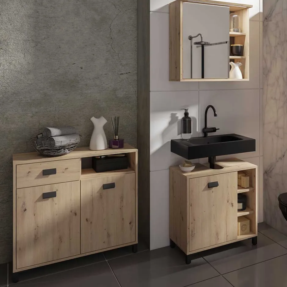 - Angesagtes Badmöbel Set in Wildeichefarben und Schwarz
