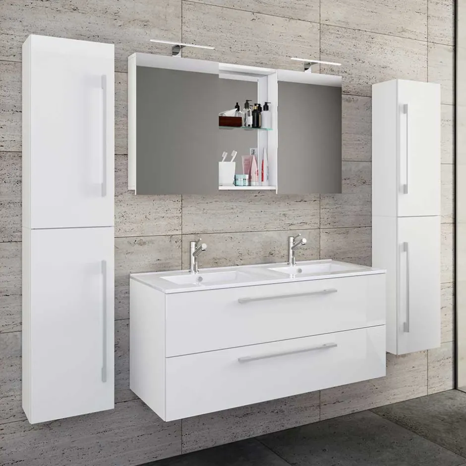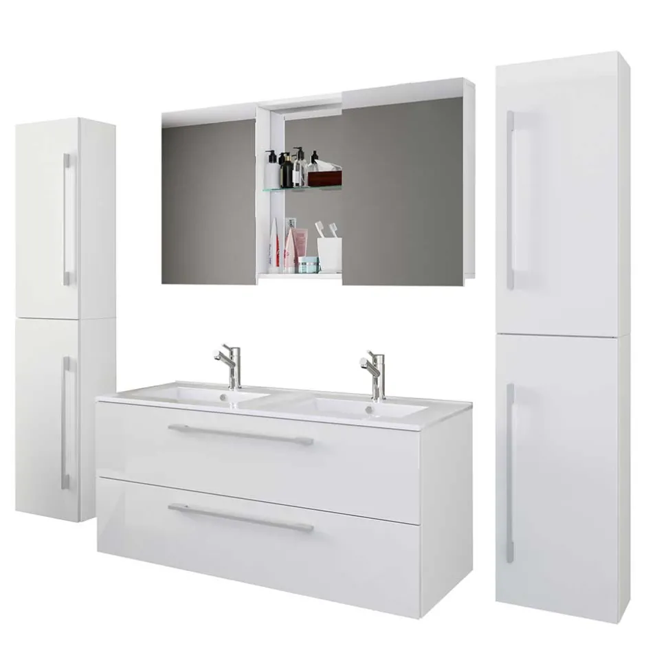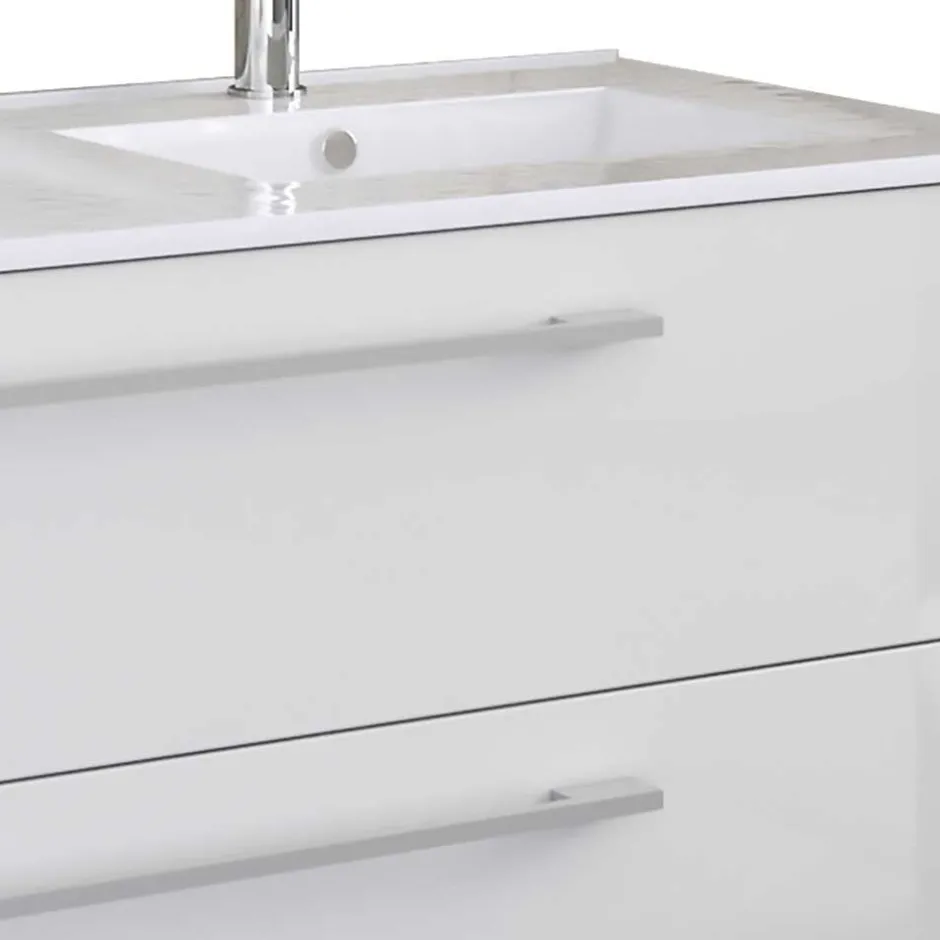 - Doppelwaschbecken aus Keramik, Maße: BxHxT: 110x17x46 cm, Innenmaße: BxT: je ca. 43×28,4 cm