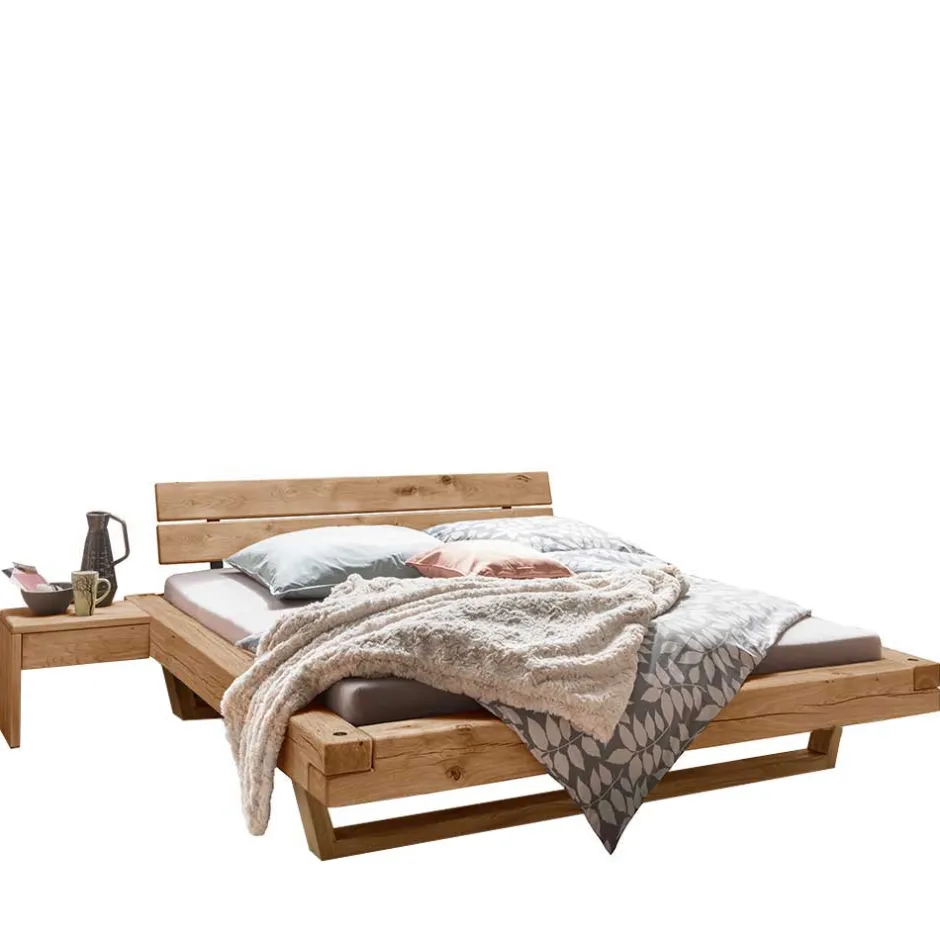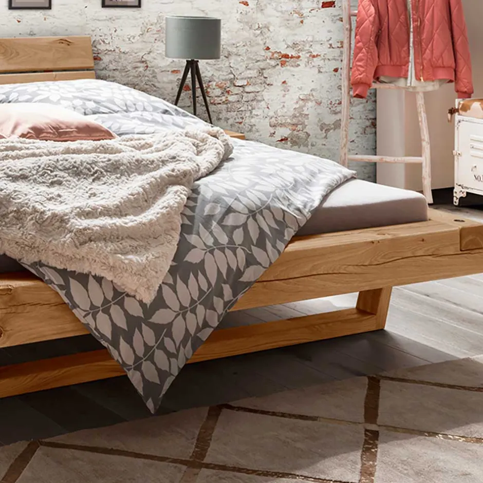 - Markante Balkenbett Kombination in Wildeichefarben