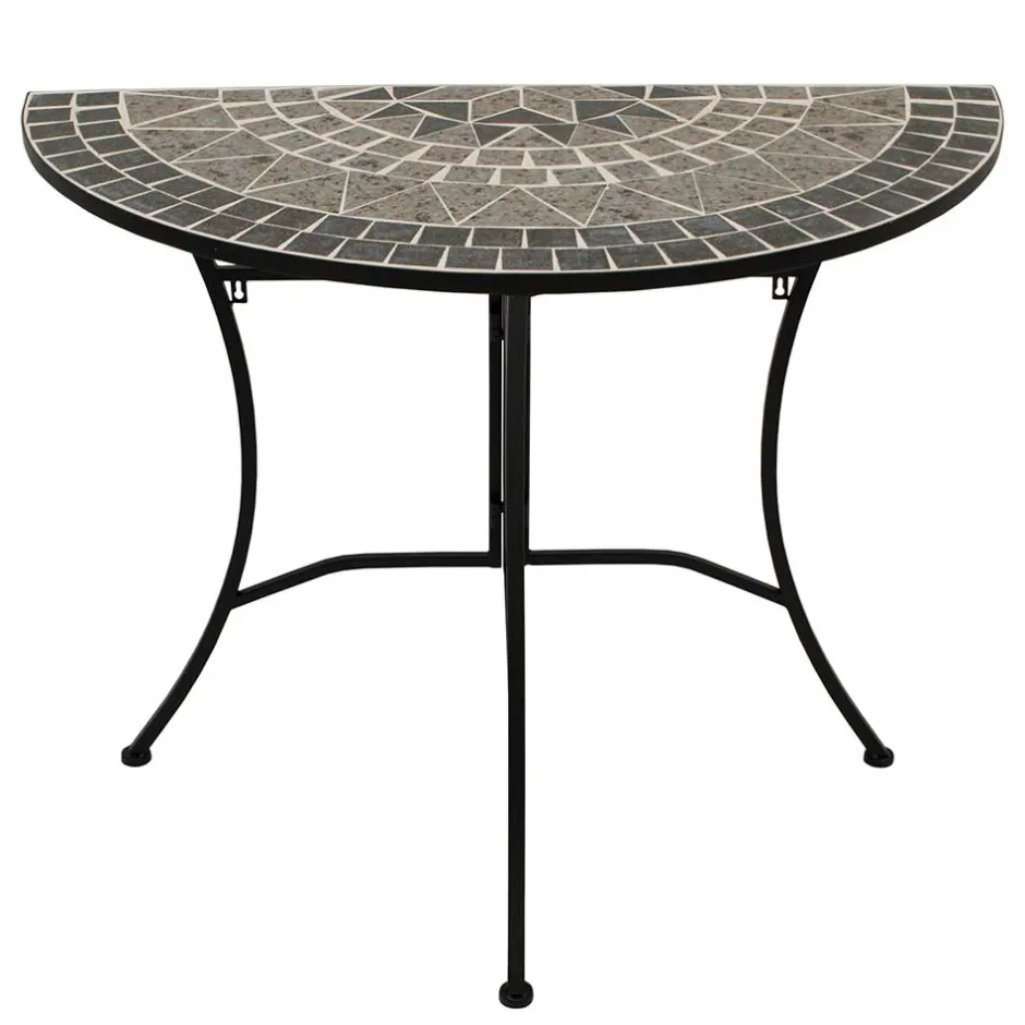 - Tischplatte mit Keramikfliesen in Mosaik Optik, Rand mit Metall eingefasst