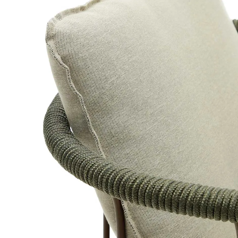 - Rückenlehne aus Metallstreben, oberer Abschluss mir Kordel umwickelt