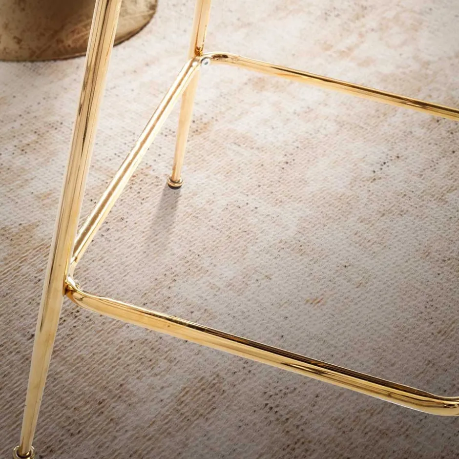 - Stabilität verspricht das goldfarbig lackierte Vierfußgestell aus Metall mit Fußablage