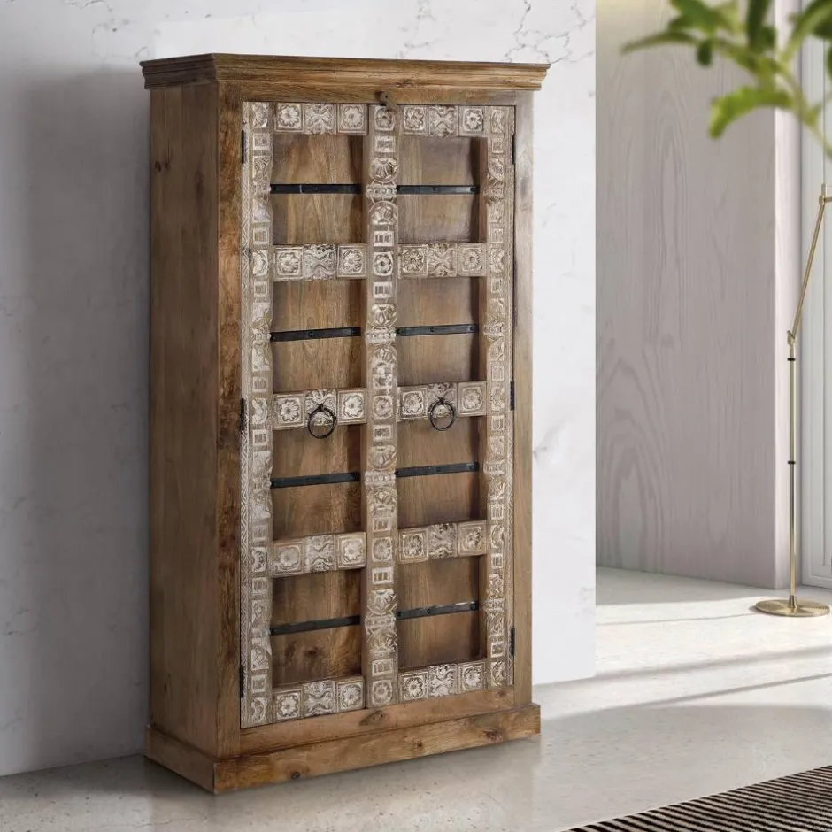 - Klasse Garderobenschrank in Mangoholz Naturfarben und Weiß