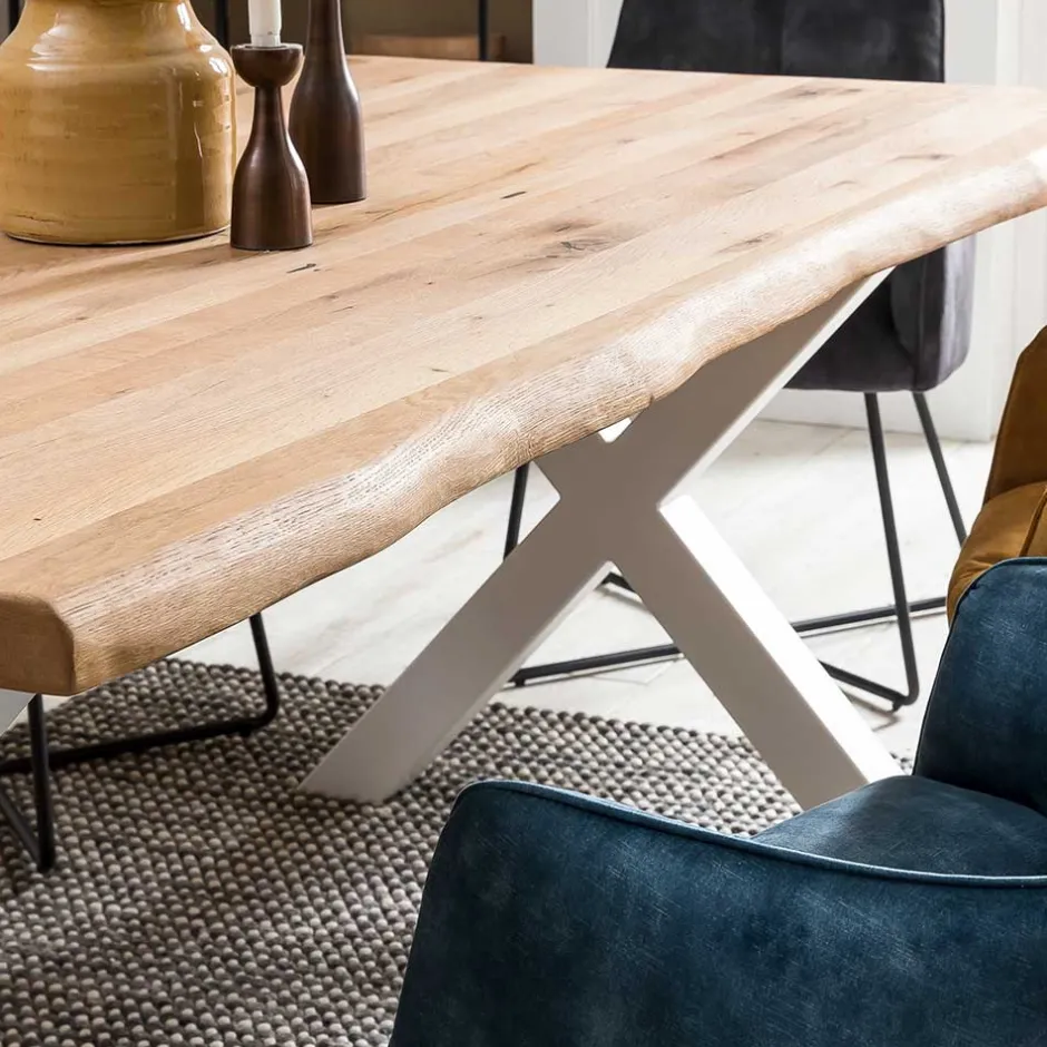 - Holzoberfläche natürlich geölt, Metall in Weiß pulverbeschichtet