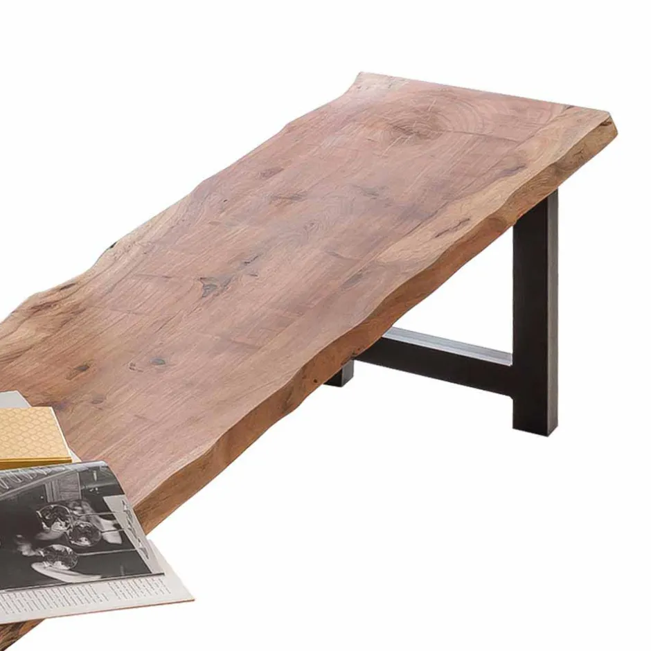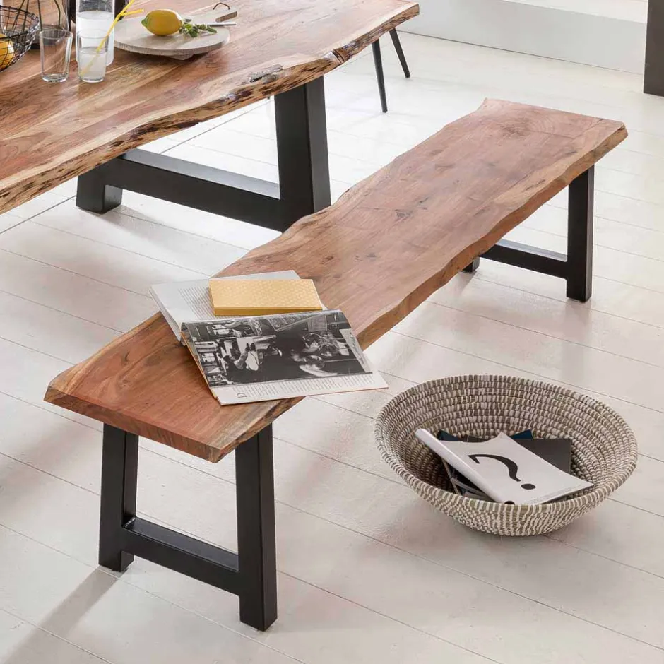 - Ansprechende Sitzbank in Akaziefarben und Schwarz