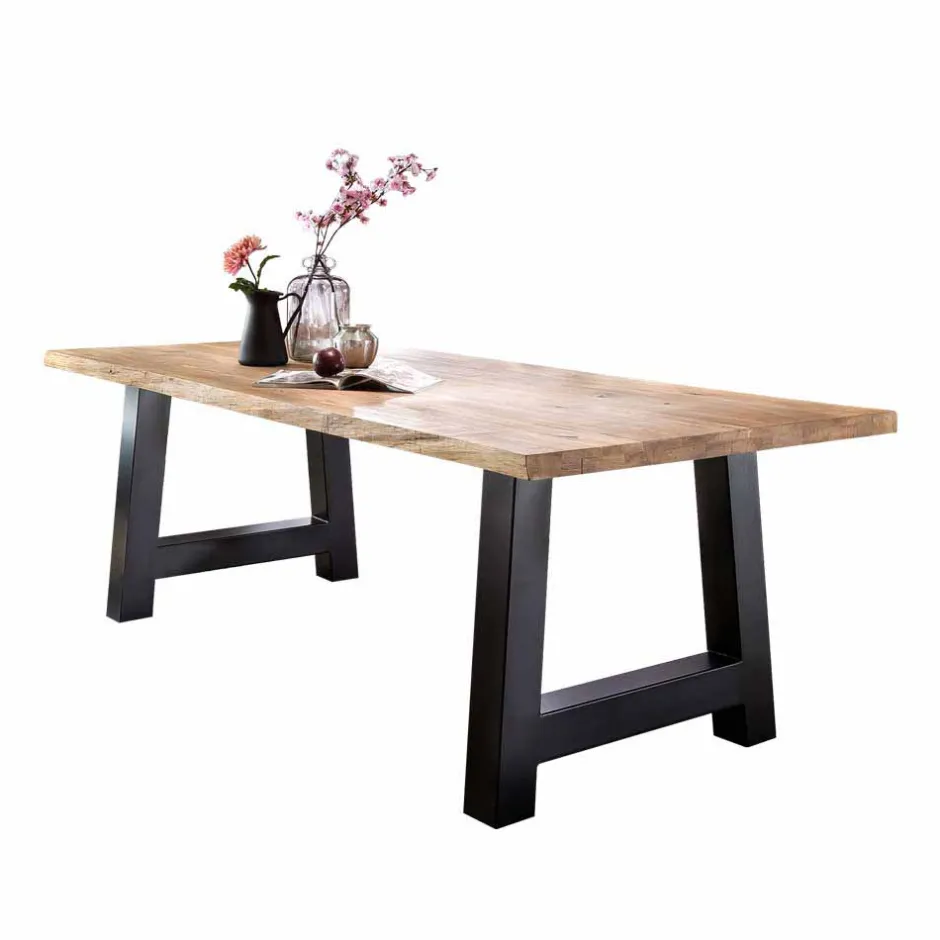 - Rustikaler Esstisch in Eichefarben und Schwarz