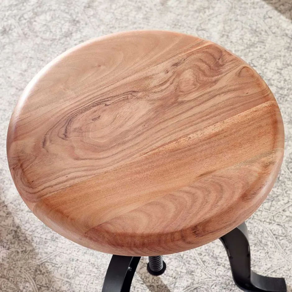 - Rustikaler Hocker in Akaziefarben und Schwarz