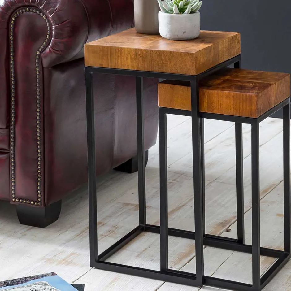 - Cooles Beistelltisch Set in Sheeshamfarben und Schwarz